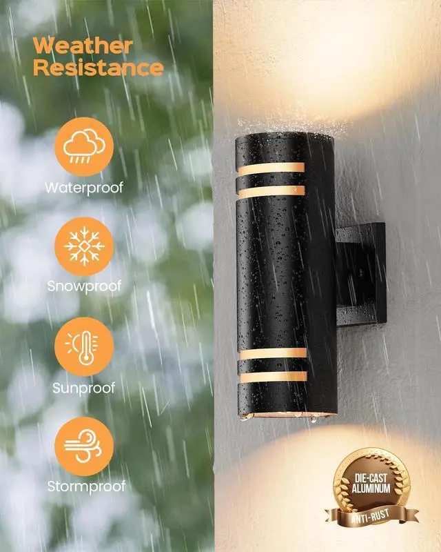 Rustproof and Durable: Crafted with high-quality aluminum and tempered glass panel, the outdoor light fixture is built to withstand the elements. The hi-tech painting ensures the product stays rust-free and prevents paint shedding, guaranteeing a longer service life than traditional metal wall lights. Its waterproof design makes it perfect for various outdoor weather conditions.