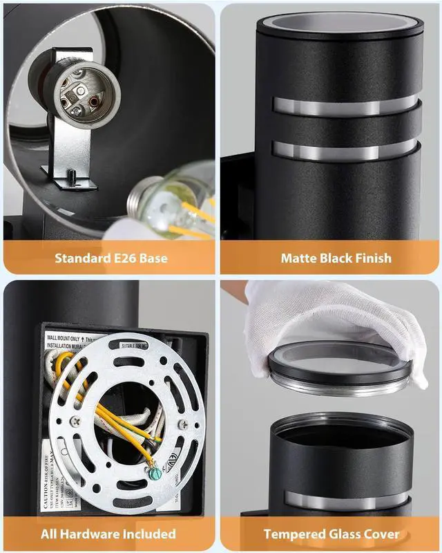 Modern Design: Enhance the aesthetics of your outdoor area with this outdoor sconce lights. The unique cylinder shape, matte black finish and sleek lines create a contemporary style that complements any outdoor decor, adding a touch of elegance to your house porch.