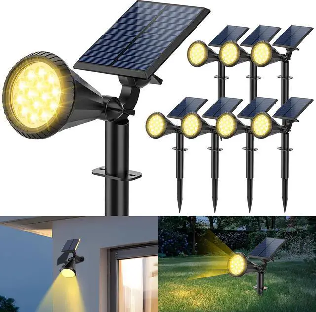 2 Methods & Easy to Install: The 2 in 1 solar landscape spotlight can stick it into the grass using the ground stakes and use it as a solar powered landscape spotlight. Or mount it on the wall with the screws included and shine light from above. The soalr light is quick and easy to install and meets all your lighting needs. Ideal for wall, yard, garden, walkways, pool, flag, trees, garage, fence, patios and more