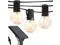 Durable LED Solar Powered Outdoor String Lights: 27 ft long string lights with 12 replaceable LED bulbs and detachable solar panel with on/off switch located on the back. 20' ' between bulbs and 6' between the solar panel and first bulb. The lit portion is 20 feet long. LED bulbs last 20, 000 hours and solar panel is rated at 1, 000 charge lifespan (can last approximately 2.5 years). Direct sunlight is best for a full charge, though you can get some use from charging in indirect light.