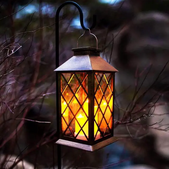 easy to useEach candle lantern is equipped with an " S" hook, so you can not only put it on the tabletop, but also hang it on a shepherds hook. this beautifully crafted solar powered lanternPerfect for garden