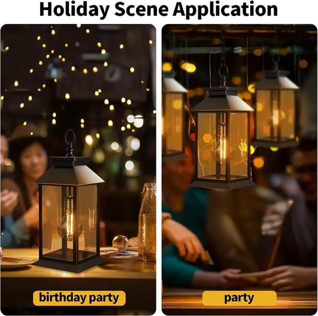 The outdoor solar lantern offers two power supply options: AAA batteries (not included) and solar batteries (included). In indoor settings such as dining tables and windowsills, 2 AA batteries can be used to power the lantern. When the 2 AA batteries run out, you can replace them with new ones to keep using the lantern. For outdoor situations like yards and camping, solar energy can be used to power the lantern. Therefore, this lantern is an excellent choice for both indoor and outdoor use.