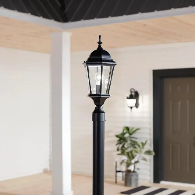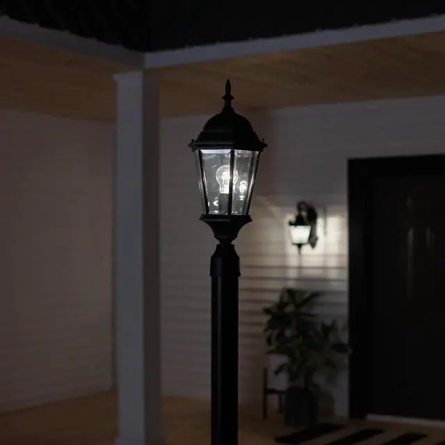 The Madison 1 light outdoor post light in black features clear beveled glass and uses 150 watt (max) bulb equivalent