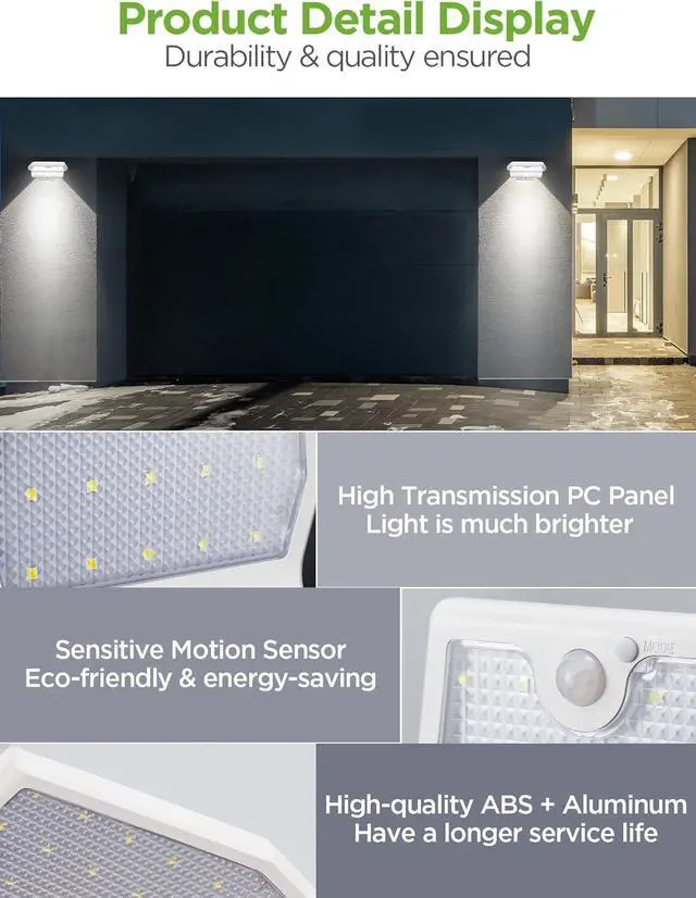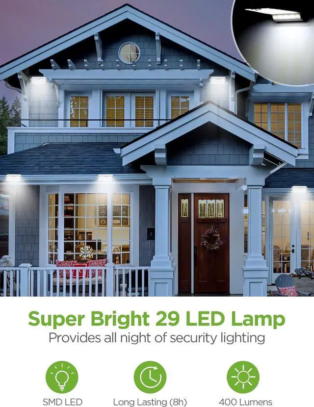 Super Bright & Long Lasting: 29 pcs of high-quality LED chips bring high brightness up to 400 lumens and provide lighting and security to your garage, pathway, front door, and more. The gutter lights can work for at least 8 hours with full charging.