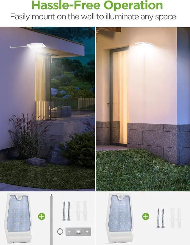 Two Easy Installation Ways: Use with a pole to extend away from the eave to get max solar energy, or use without a pole and mount as a wall or fence light. No wires are required. Installation is as easy as 1-2-3.