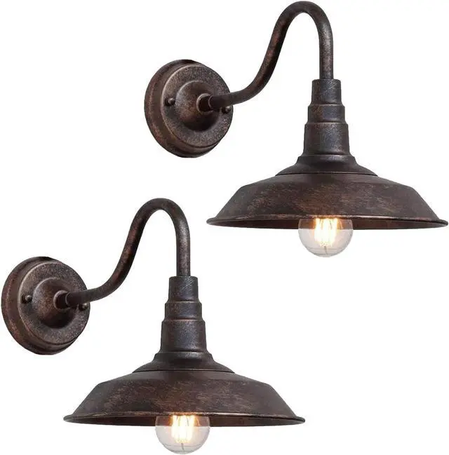 Gooseneck Outdoor Wall SconceThe set of 2 outdoor barn light with elegant gooseneck arm combines vintage and industrial styles, bringing an attractive and classy look to your home, easily sublimate your various decorations and create a pleasant atmosphere.