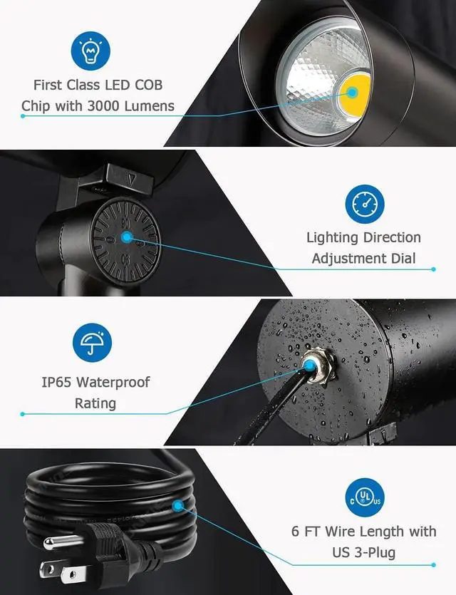 Updated 30W Landscape Lights Super Brightness Compared with Others30W LED landscape light, 3000 Lumen 3000K warm white great for illuminating your Flag Poles, Palm trees, Patio, Garden, Path, Back Yard, Fences. Equivalent to 200W halogen light, saving electricity cost.