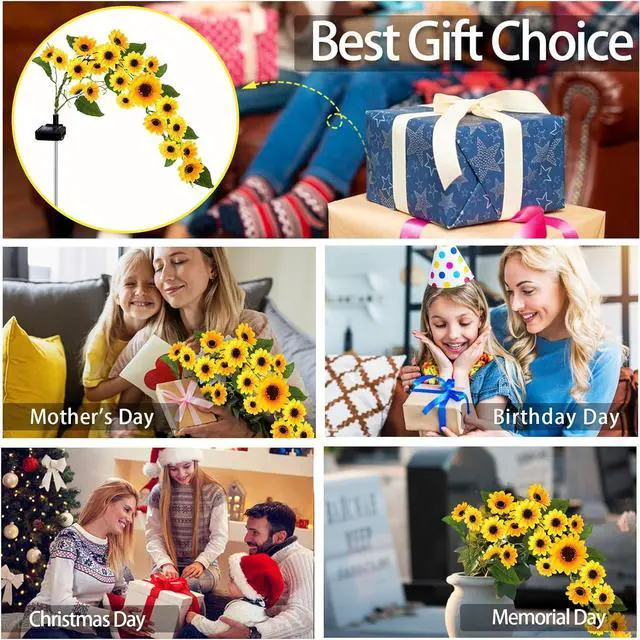 Garden Decorations Unique Gift: Solar sunflower lights can enhance the beauty of your garden, lawn or patio. Their unique design and warm glow create a charming atmosphere, ideal for outdoor decorations and evening Fall decor. In addition, they are a unique garden gift, perfect for women who love gardening