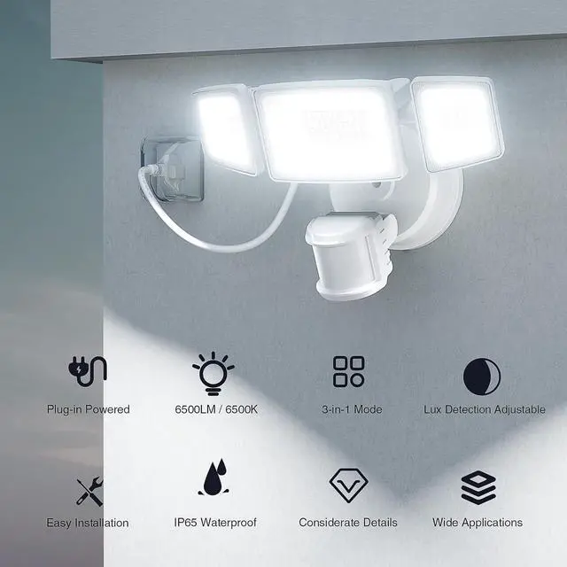 BRIGHT ILLUMINATION: 6500 LM of brightness from each light floods your yard, patio or garage with brilliant white light for excellent visibility and security