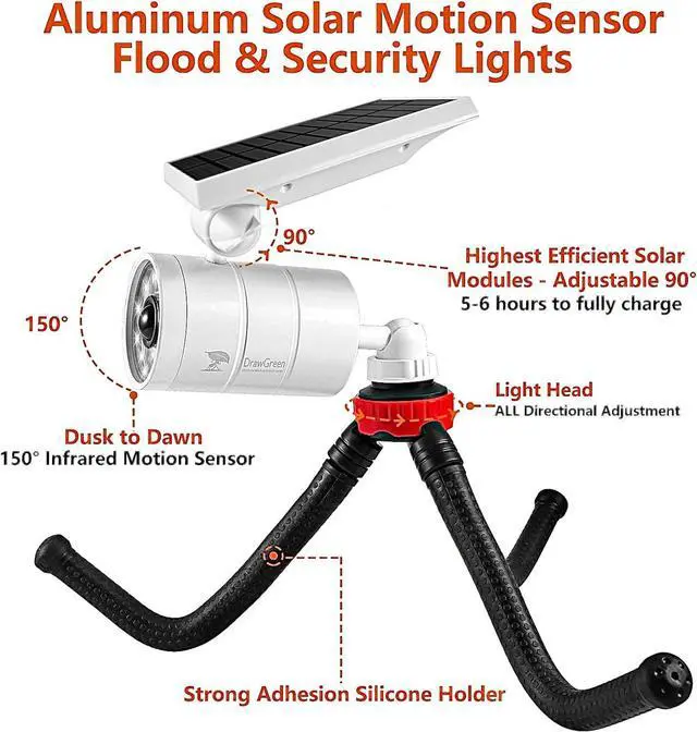 Versatile Tripod-Mounted Solar Motion Lights Outdoor Waterproof - This solar-powered motion-activated light features an adaptable tripod bracket, allowing flexible placement in gardens, porches, driveways, balconies, campsites, or any outdoor location. Equipped with highly sensitive infrared sensors, it ensures 360-degree lighting and wide-angle detection for full coverage. Ideal for camping, BBQs, hiking, or hunting, it provides reliable pathway illumination and doubles as an early-warning system to alert you to movement. This solar light is a must-have for outdoor/camp.