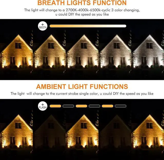Memory and Timing Function: The solar spotlights can remember the settings from the last time they were used, so you don' t need to change them every day. At the same time, you can also select 2H/4H/6H timing through the remote control.
