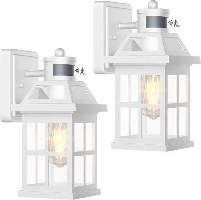 -: Outdoor motion sensor wall lights white have super wide range for up to 40 feet and 220° wide angle, giving you full sense of security. Sensitive motion detection from our white outdoor sconce lights offers various modes to satisfy your different needs. Simple mode switch on the lantern head allows you to make easy change. Welcoming light and warmth in daily life just greatly improve our pleasure.