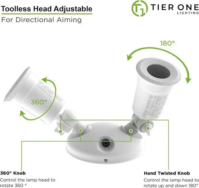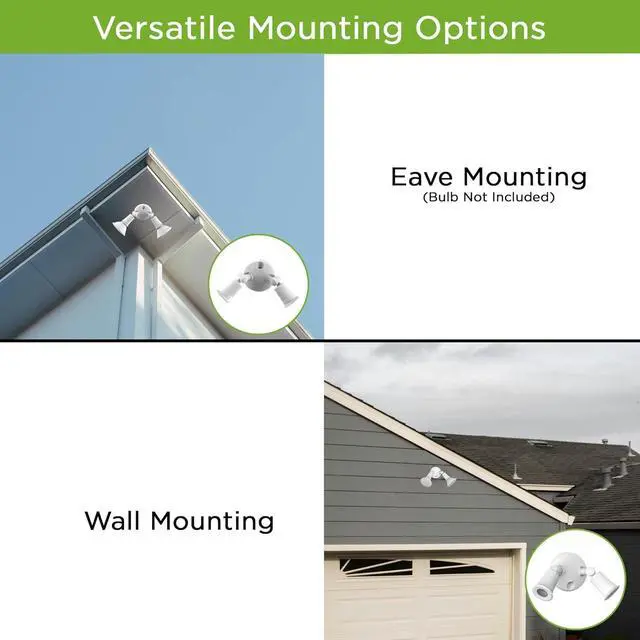 Versatile Mounting Options - Perfect for wall-mount or eave-mount applications, tool-free adjustable heads on the outdoor light fixture offer up/down & side-to-side aiming for safety & security lighting, built-in hanging wire for easy hands -free install.