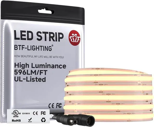 Perfect for both residential and commercial applications including hallways corridors DIY backlighting projects and specialty lighting installations. Shopping With ConfidenceUL Listed for safety assurance. Engineered with premium double-layer copper PCB for superior conductivity and heat dissipation. Backed by a 65 000+ hour lifespan and 24/7 dedicated customer support. Easy peel-and-stick installation with strong 3M adhesive backing - no tools or wiring skills needed! For installation guidance troubleshooting or warranty service our customer service team are always ready to assist you. Universal CompatiblityOur FCOB LED strip is compatible with most dimmers using standard control protocols including ELV TRIAC DMX Dali 0-10V RF.