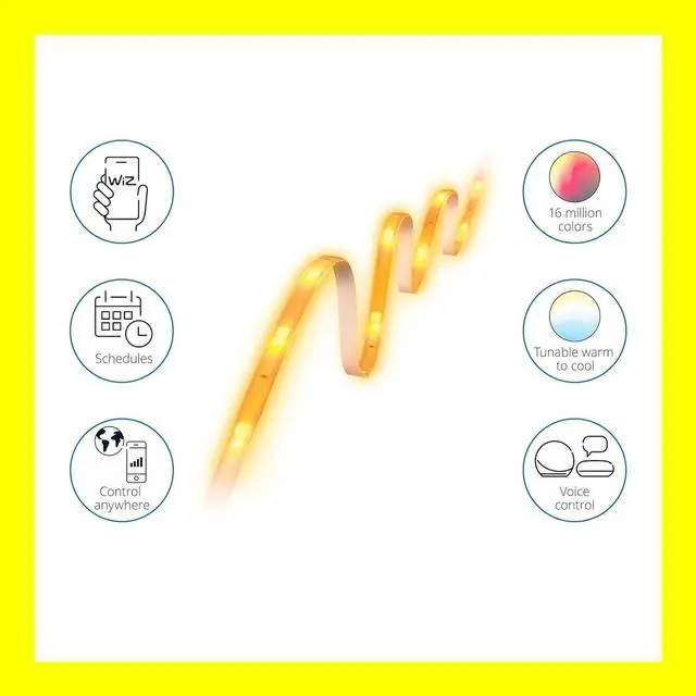 EASY SETUP - Works with your existing 2.4G hz Wi-Fi. Download the WiZ Connected app and you're ready to go. SMART CONTROL - Control from anywhere with the WiZ Connected app or go hands-free with voice control. The app makes it easy to invite family members and guests to control the lights without changing your settings. EASY TO USE - Simply stick the flexible strip to any surface you like - tray ceilings or under cabinets. SMART FEATURES - Schedule your lights to turn on or off to fit your routine or set vacation mode to automate your lights even when you are away from home to mimic presence 16 million colors and adjustable from warm white to daylight.