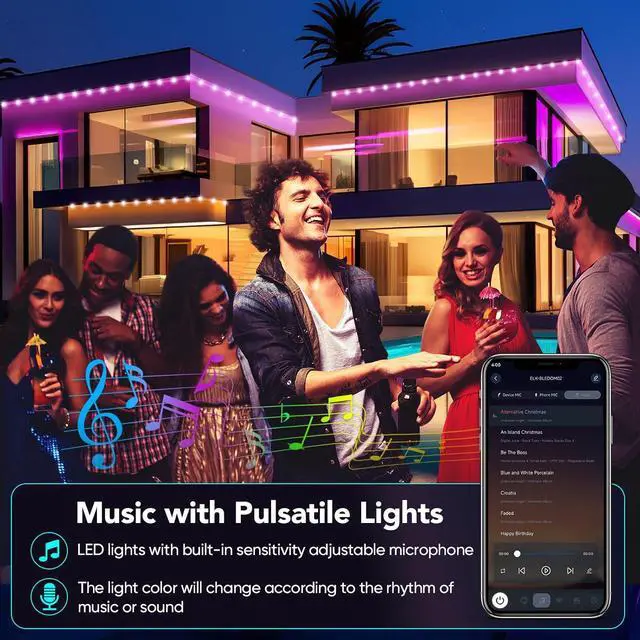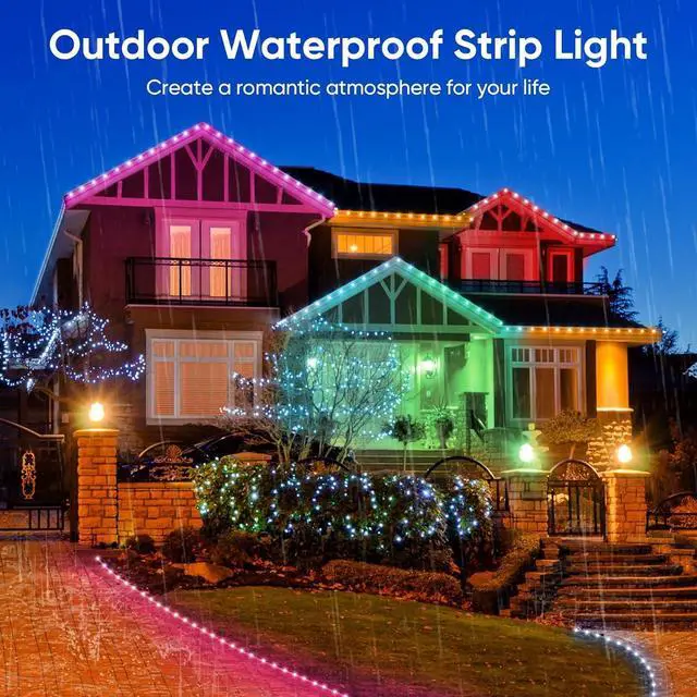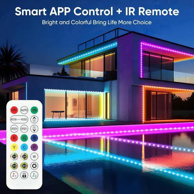 IP67 outdoor waterproof design: Our waterproof light strips feature a transparent full PVC waterproof housing offering dust-proof rain-proof and splash-proof properties. They are suitable for harsh outdoor environments such as gardens swimming pools and balconies. The LED light strips and control box are waterproof but the power supply is not. Smart Dual Control & Multi-Functionality Adjustable brightness and multiple lighting modes to adapt to the atmosphere of the room and an inbuilt high-sensitivity microphone for easy synchronization with your favorite audio. Switch between multiple colors and 8 dynamic lighting modes with a 24-key remote control with a control range of up to 32.8 feet. Safety & Hassle-Free Installation 24V