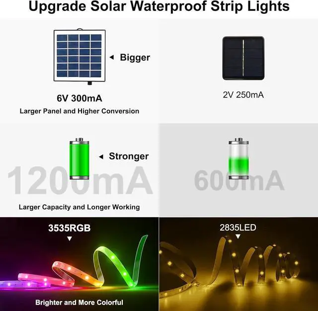 Weatherproof & Versatile Design: Our IP67-rated waterproof LED light strips withstand rain snow and harsh weather conditions. The flexible 50ft LED strip lights can be cut to size and feature strong adhesive backing for easy installation on any clean surface. Don't forget to remove the solar panel's protective film for maximum energy efficiency! Smart Lighting with