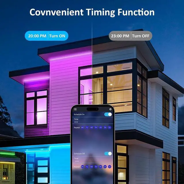 You can also automatically set the on/off time saving your time and energy and extending the lifespan of this outdoor lightEasy to Install Our LED strips mount effortlessly. It can be secured with buckles and cut to the length or shape you need to decorate your living room kitchen bar bedroom garage and other placesComplete Package and WarrantyIt includes a 400FT LED light strip a 24V power adapter a Bluetooth control box a 44-key remote control a user manual a 12-month warranty and 7x24 customer support. If you have any questions upon receipt please feel free to contact us at any time