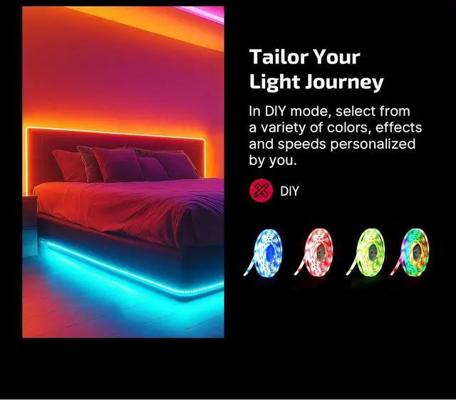 ??????????????????????????????: Easily control brightness color and effects through the app. Set schedules scenes or sync with your lifestyle at any time??????????????????????????: Watch your lights dance to the rhythm. Perfect for parties gaming nights or a relaxing vibe????????????????????????????????????: Choose from millions of colors and modes to match your mood from cozy warm tones to vibrant party colors????????????????????????????: Easily set a timer to automatically turn the Ostrip LED RGBIC strip on or off???????????????? &??????????????????????????: 16.4 ft strip with strong adhesive backing and cuttable design fits anywhere behind TVs under beds or along walls???????? &??????????????????????????????: Low-voltage LED strip thats safe for daily use energy-saving and cool to the touch????????????????????????????????: It's perfect for bedrooms closets kitchens living rooms game rooms bars and more creating the ideal ambiance for everyday life as well as parties and special occasions
