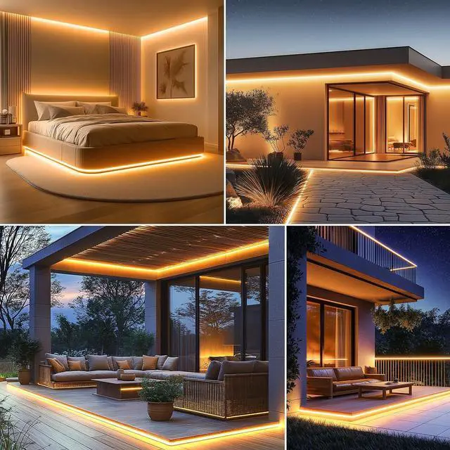 Outdoor LED Strip Lights: Waterproof IP65 level allows it to beautify both indoor and outdoor lighting scenes. The outdoor led strip lights waterproof can be installed outdoor and withstand splashes or rainfall and prevent bask in. Suitable for both indoor and outdoor use. (LED controller and power plug are not waterproof please take waterproof measures.
