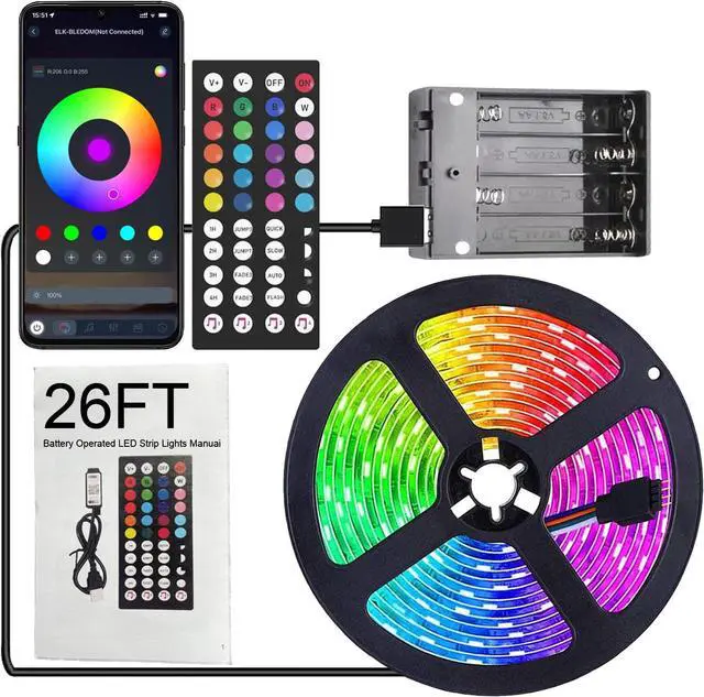 Portable & Wire-Free Bliss: Enjoy vibrant lighting ANYWHERE! Powered by 4 AA batteries (not included) or USB (5V adapter/power bank not included) this 26ft strip is perfect for spots without outlets - bedrooms closets campers parties bikes and more. Just flip the switch on the battery pack!?? Smart Control at