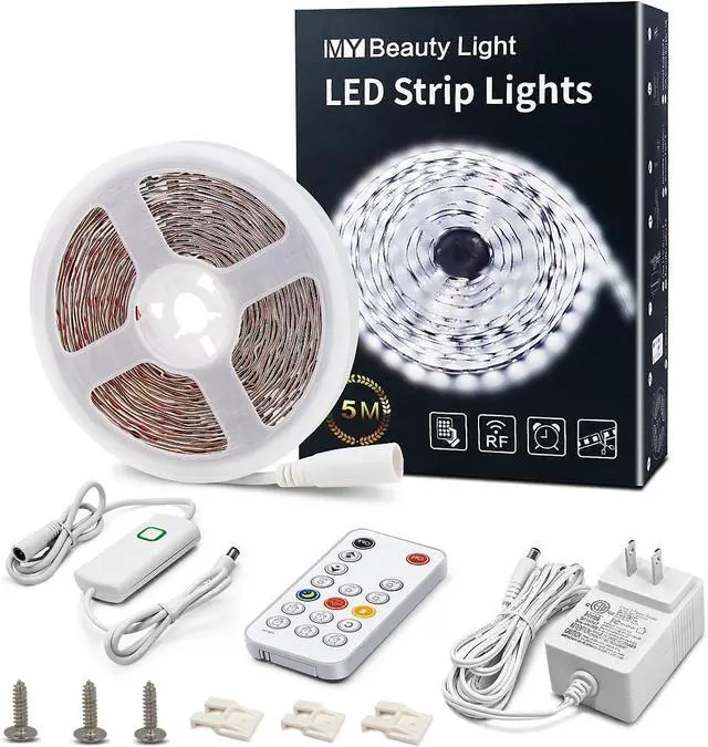 Controlling Methods: The led lights strip comes with a rf remote controller and a dimmer switch. You can use each of them to control led light stripsDimmable: Rf remote controller is with 10 degrees brightness adjustment and 4 hot buttons for brightness selection. Dimmer switch long press to adjust light brightness short press to turn on or off on-green light off-orange light5 Timing Modes and 2