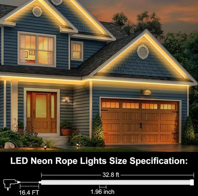 Warm White Neon Strip Lights: The Silicone neon rope lights include 1200 super bright warm white LEDs with 24V working voltage and 2700K Color Temperature. Upgraded LED and Side-Brightness Design Make LED strip Lights Shine Brighter than others 120 Degrees Projection Range offers Large Illumination Coverage and the Light is very even down the Strip. (Power Adapter Included) Touchable