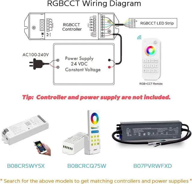 RGB color changing lights for atmosphere and entertainment; Warm white lights for rest sleep and leisure; Neutral white lights for reading learning and working; And daylight lights for tasks such as makeup and dressing. Each 7LEDs Can Be CutTo meet the needs of your bedroom and other indoor lighting projects you can cut the RGB CCT LED strip at the cutting line position. Every time you cut there will be left with a 62.59 mm/ 2.46 inch long strip. 2 connectors are included for length DIY project. Drived By RGBWW Controller & 24VDC Power SupplyThis is a low voltage LED strip light please use a 24V power supply to drive the lights (need to be purchased separately).