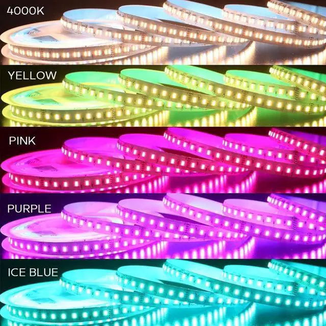 The Highest Density 5in1 RGBWW LED StripThere are 112 SMD5050 LED lights per meter 560 LEDs per reel CRI90+. With super density and light brightness. This is the highest density type of 5-in-1 RGBCCT LED strips the dark area is smaller. 4Moz High Quality FPCB Board 30-35LM/LEDOur RGBCW LED strip adapts 4OZ FPCB as base low voltage drop and good heat dissipation. It can achieve 30-35lm per LED 16800-19600lm per reel illuminate your bedroom with high brightness. RGB+Adjustable White LightsThis bedroom LED strip lights are available in all colors you can freely choose a color to display according to your current mood and feeling.
