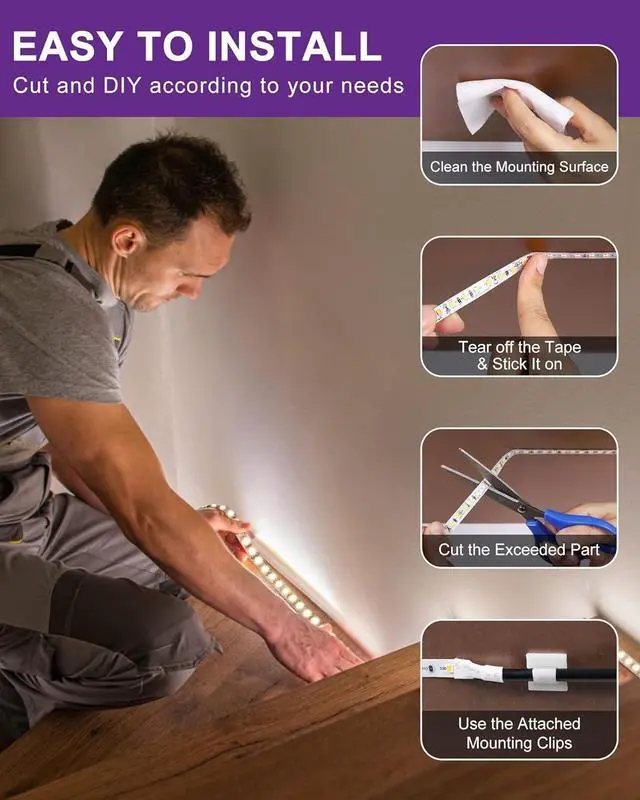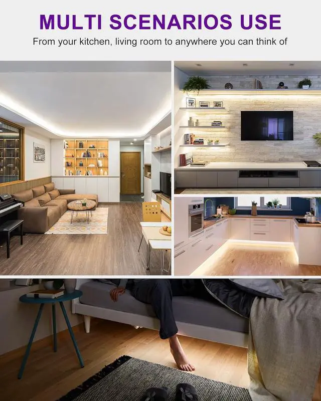 AND FLEXIBLE: Our 4000K white LED tape light can be dimmable with a compatible dimmer. They are perfect for various indoor/interior uses including under cabinet lighting in kitchens ambient accent lighting in bedrooms toe-kick lighting in hallways or adding a backlight source for vanity mirror decorations bookshelvesSIMPLE