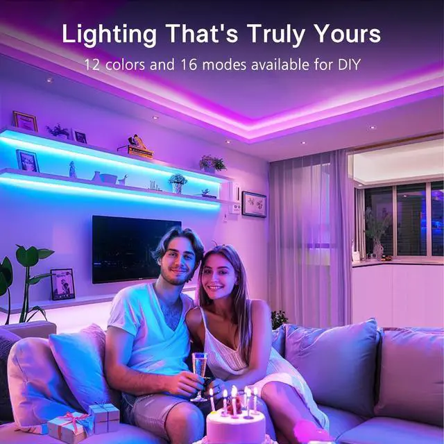 The 16.4 ft RGB light strip ETL 48W power supply remote control and a connector mean zero assembly required. The strip features a strong 3M adhesive backing for easy lasting attachment. Cut the strip every 2.48 inches to fit your needs be it a TV backlight party accent or room lighting. Liven Up Any OccasionElevate your parties family gatherings game room or holiday décor with vibrant RGB lighting. Add a touch of magic to any scene!