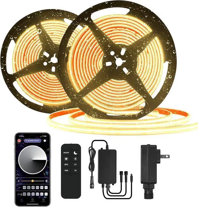 Suitable for outdoor pool garden 3D printers etc.! Ultra-Flexible & Easy to Shape Our COB Strip Lights are more lightweight and easier to bend than traditional Neon LED strips making them perfect for curved surfaces corners and creative DIY lighting designs for outdoor. Smart Control via Remote & App COB LED strip light The 8-button infrared remote control and app controller have memory function timer function brightness increase/decrease.