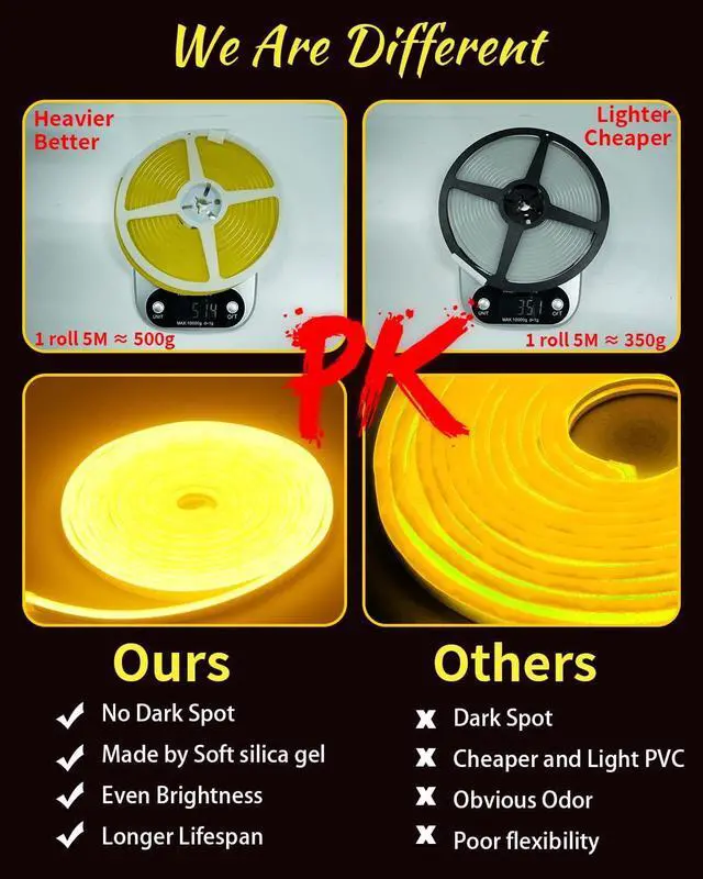Credit: IP67 can be used indoors and outdoors led rope lights length: 5M ( 16.4 ft) =1 reel 2835 led chipset led quantity: 600LED/5M (120LEDS/M)