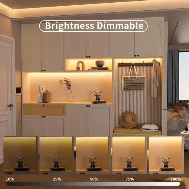 Dimmable: MIWISE 24V COB LED Strip Light is dimmable. The kit includes a 24V LED stepless dimmer to adjust the brightness of the strip light from 0 to 100%. You just turn the button on the dimmer/controller so you can get the brightness you want!