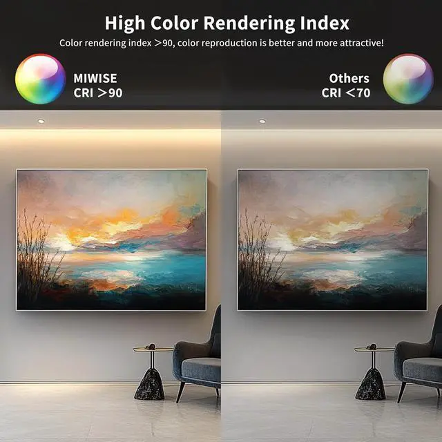 High Quality: The design of the double-layer pure copper PCB not only provides excellent and reliable stability for the COB LED strip light but also significantly improves the heat dissipation effect of the strip light! The color rendering index of up to 90+ provides a more realistic color effect for your space. The stable performance of MIWISE COB LED strip light provides a service life of more than 65 000 hours which fully meets your needs! Easy to