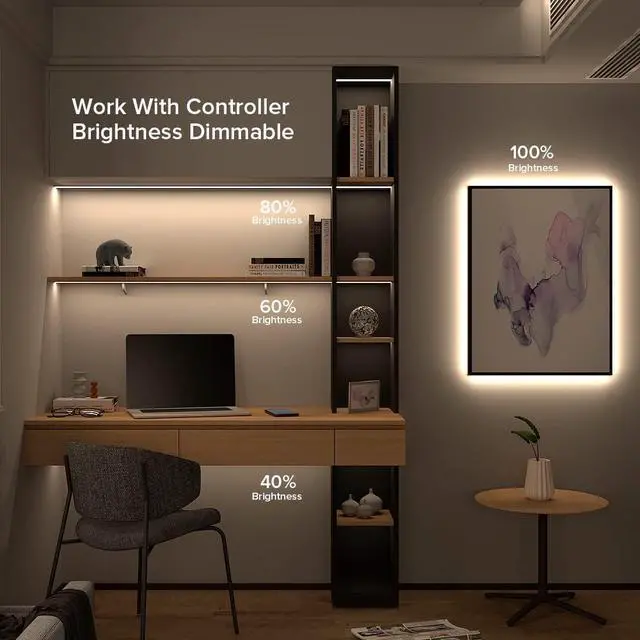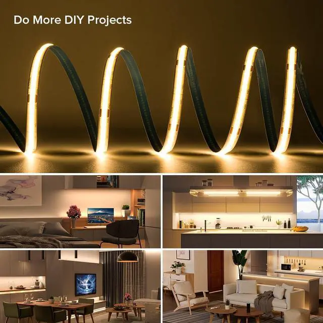 Bluetooth APP: SP630E (B0BWN91Q1L) SP641E (B0BZYTBBDL); RF remote control (B0BN1RVCZP) in single color. (Product does not include controller and power supply. )Power calculationThe actual power of 16.4FT COB LED strip light will be affected by the voltage drop. For example the power of DC12V 16.4FT 320LEDs /m is about 17W not 9W/m x 5m= 45W. The calculation method of 45W is wrong and the voltage drop should be considered. Easy Install Widely Application. Suitable for interior decoration. Such as kitchen cabinet bedroom stair mirror corridor DIY backlight table lamp toy light DIY lighting special use and other lighting. Come with double-side tape (IP30 non-waterproof Indoor Use Only).