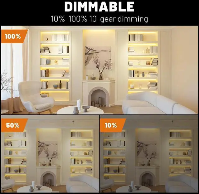 Dimmable & Versatile: Adjust cob led stirp brightness from 0-100 to suit any setting The warn lighting is good for creating a relaxing ambiance or brightening up a room for a specific task.