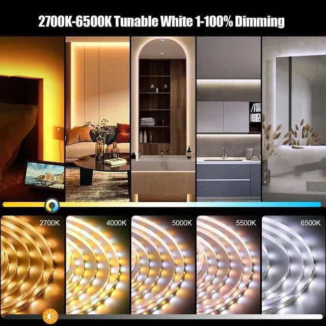 Super Long: 2 Rolls of 50ft LED Light Strips consists of 1800 pieces uper bright and high-quality 2835 LEDs. The led strip lights for bedroom are long enough and light the whole place up. Perfect for your house ceiling bedroom living room etcEasy