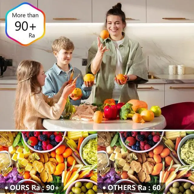 DIY: Self-adhesive tape makes it easy to stick on clean dry surface. Also you can install it with screws (included). The cutting design enables you to trim the strip light to desirable lengths for your DIY home lighting needsWhat