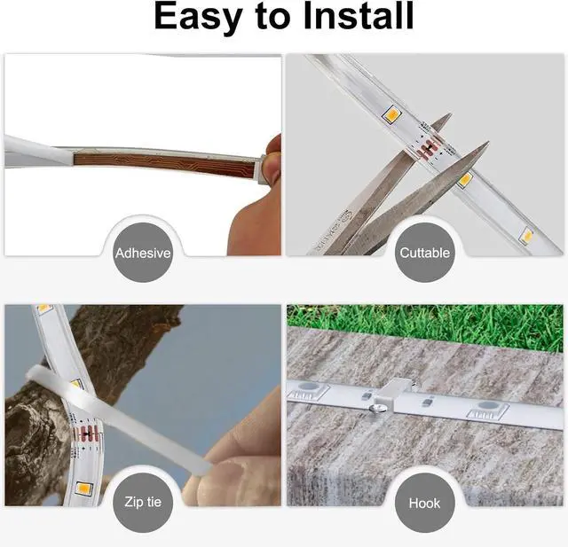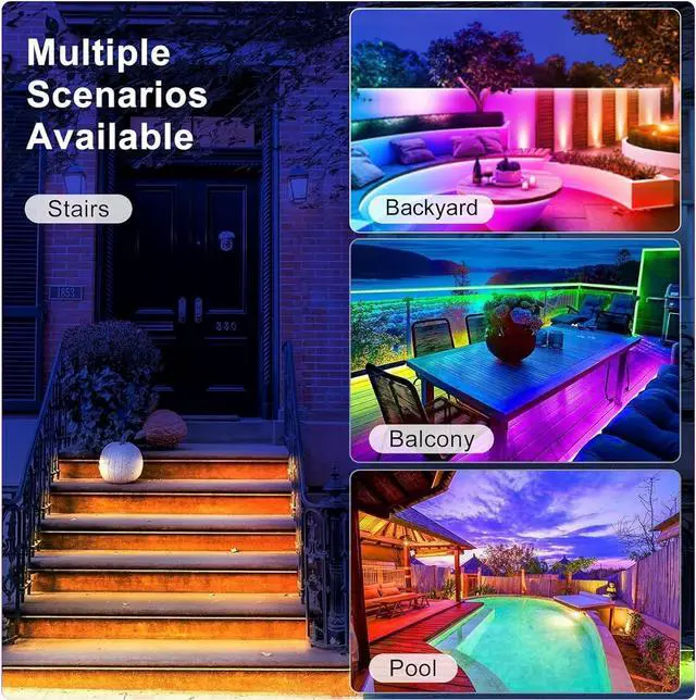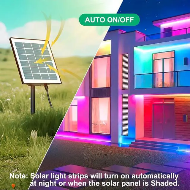 Weatherproof & Versatile Design: Our IP67-rated waterproof LED light strips withstand rain snow and harsh weather conditions. The flexible 50ft LED strip lights can be cut to size and feature strong adhesive backing for easy installation on any clean surface. Don't forget to remove the solar panel's protective film for maximum energy efficiency! Smart Lighting with