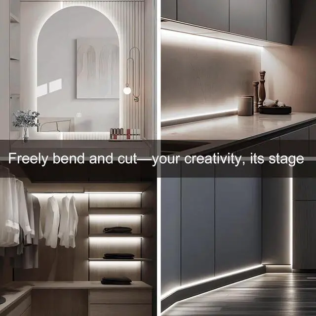Brightness COB LED Strip: This cob led strip delivering brighter and more uniform illuminationcompared to traditional LED strip lights With a 6000K cool white color temperature and CRl 90+ these led strip lights battery powered bring vivid clear lighting to any space without dark spotsFlexible and Cuttable for