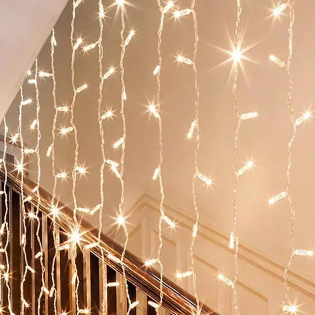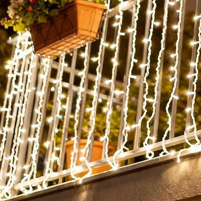 Create a sparkling and dynamic display with this 300 LED 12 strand twinkling curtain light. The plug-in design ensures continuous bright illumination, while the included remote control allows easy adjustment of lighting modes, brightness, and twinkling effects. Perfect for home decoration, weddings, parties, Ramadan and Eid setups, or DIY projects, these lights are lightweight, easy to hang, and bring a magical festive ambiance to any indoor space.