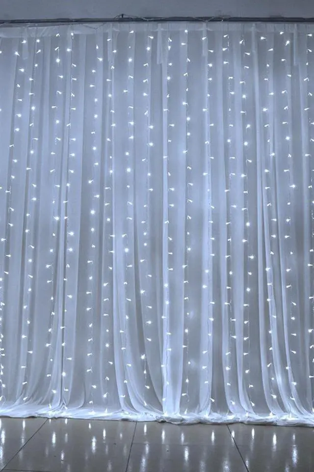 Create a soft, romantic glow with 600 LED twinkling curtain lights that resemble shining stars through sheer curtains.