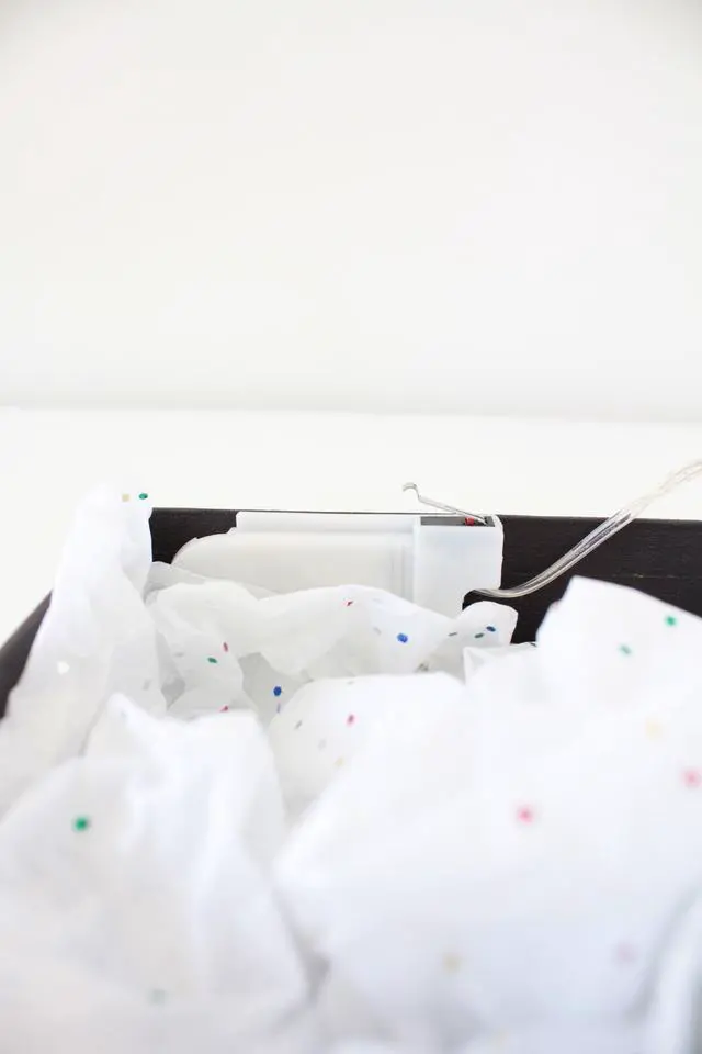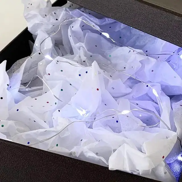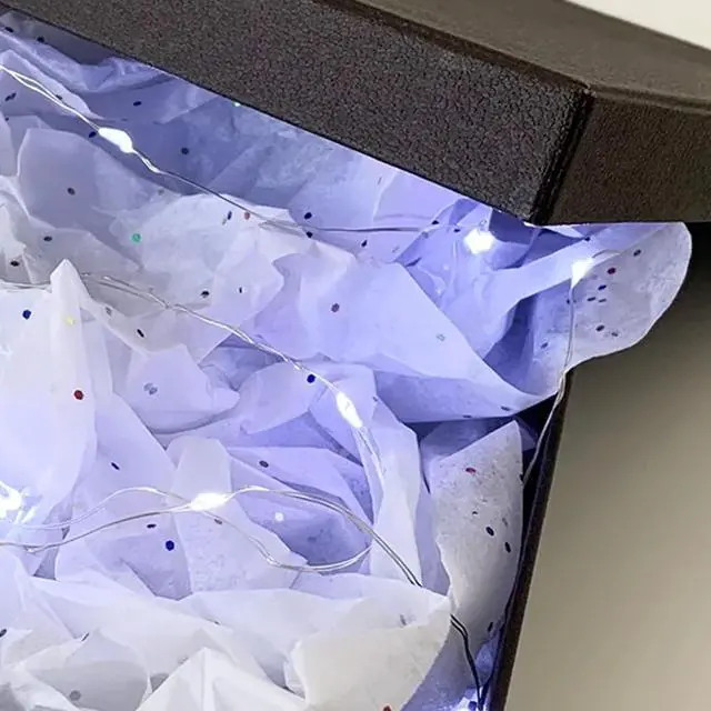 Make every gift unforgettable with Gift Box Fairy Lights. Designed with a smart pressure switch, the lights stay off until the box lid is liftedinstantly illuminating your gift for a magical surprise. Crafted from flexible silver copper wire, these fairy lights can be easily shaped and woven through tissue paper to create a soft, elegant glow. Batteries are included, so its ready to use right out of the box.