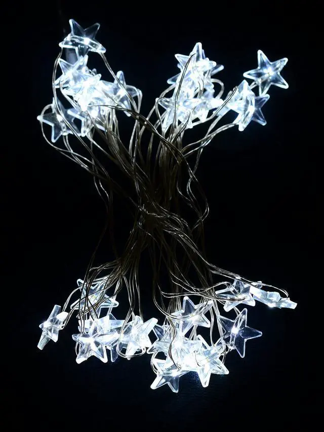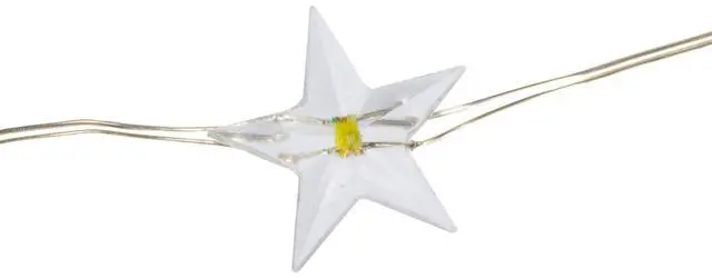 A set of 20 LED string lights with star-shaped bulbs in white. Battery operated and perfect for adding a charming touch to any indoor décor.