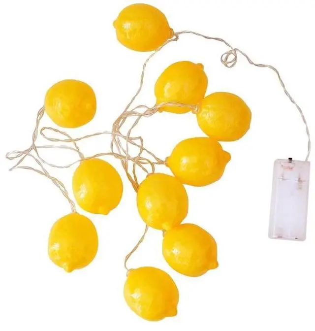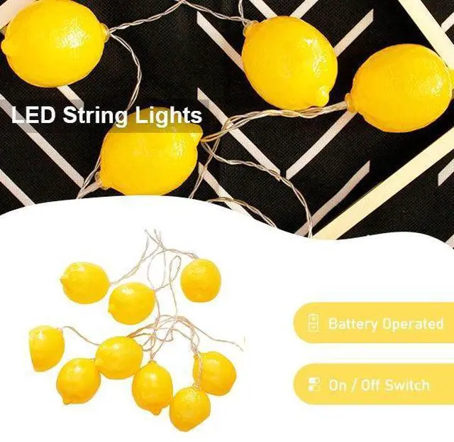 Add a fresh and fun touch with these 10 LED warm white lemon string lights. Battery operated and versatile, perfect for windows, trees, decks, or indoor décor.