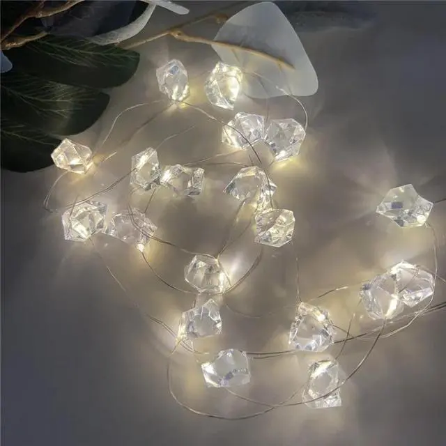 Dazzling and crystalline, these silver copper fairy lights resemble sparkling ice cubes or crystal rocks. High-quality micro LED bulbs provide a steady 360° viewing angle and ambient illumination, enhancing your lighting experience. Battery operated and portable, they are perfect for weddings, centerpieces, home décor, Christmas lighting, holiday events, and parties.
