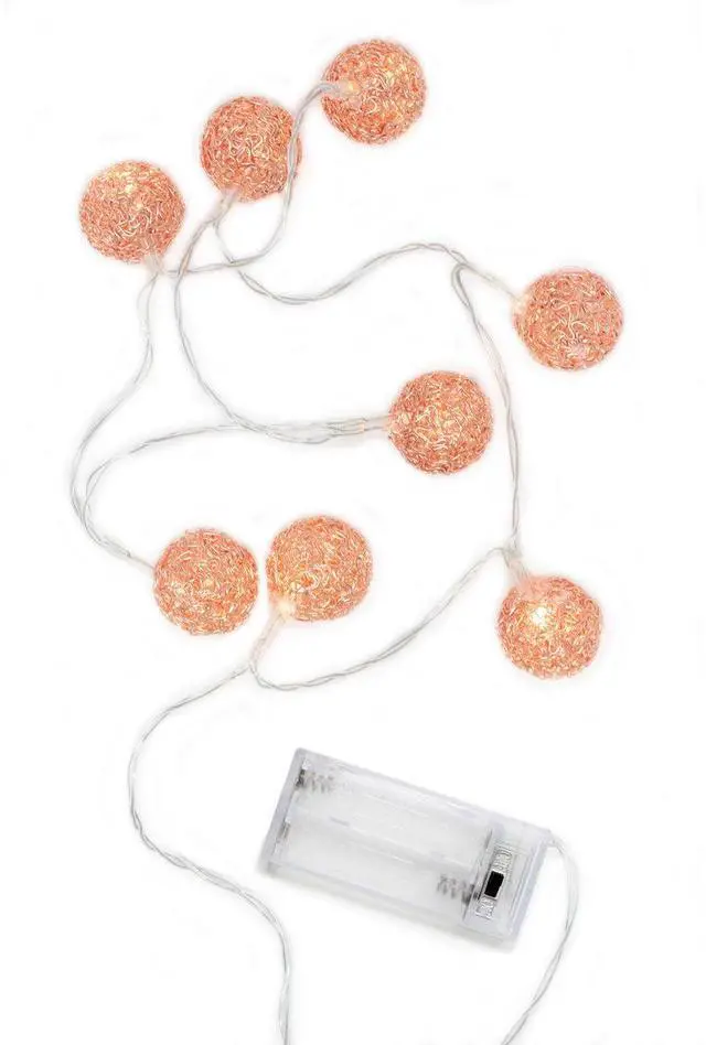 8 LED Rose Gold Metal Mesh Ball String Lights - Battery Operated