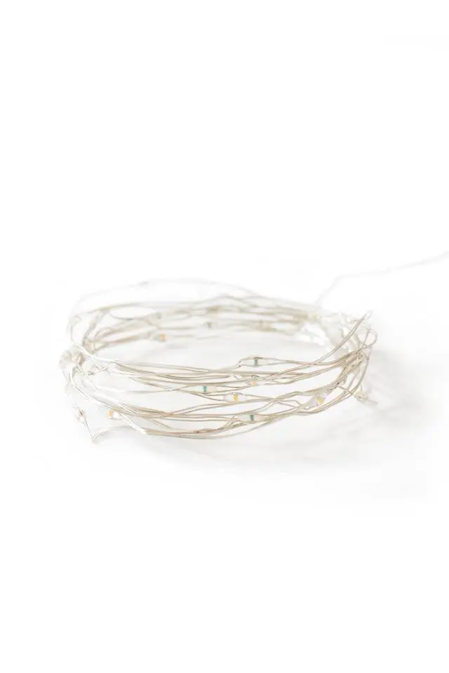 Silver copper wire twinkles with tiny LED lights to create an inviting glow. Wrap around your headboard, hang behind a sheer curtain, or illuminate a bookshelf. Easy to bend or shape for a custom look.