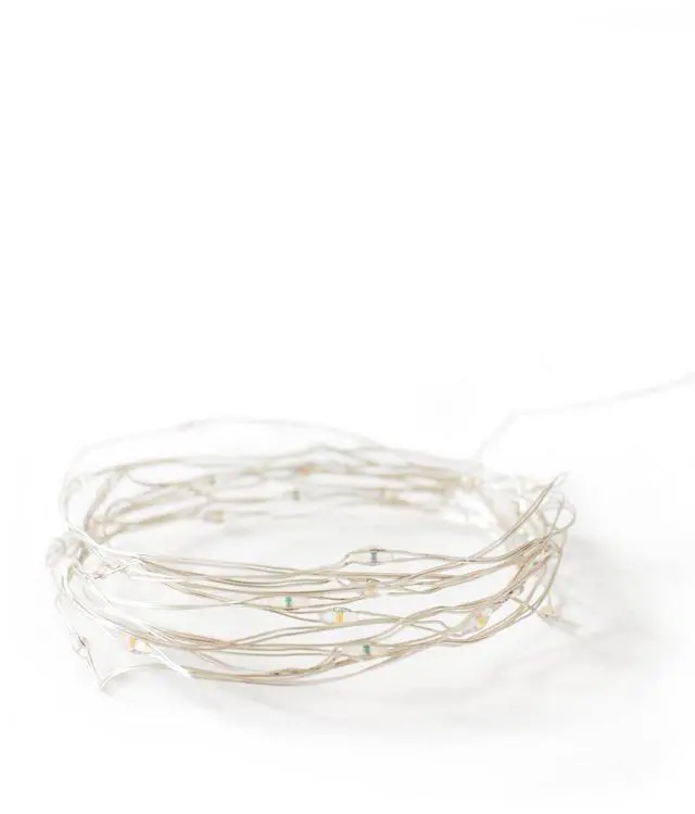 Silver copper wire twinkles with tiny LED lights to create an inviting glow. Wrap around your headboard, hang behind a sheer curtain, or illuminate a bookshelf. Easy to bend or shape for a custom look.